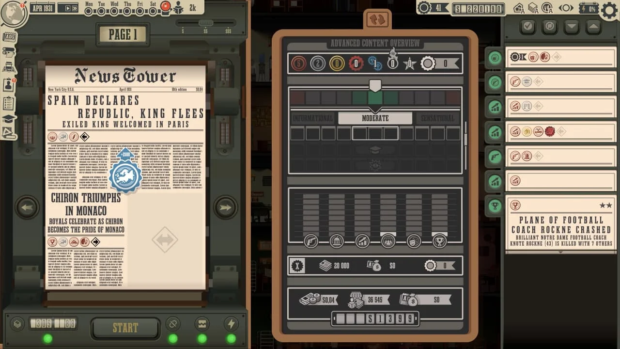 News Tower — это увлекательный симулятор управления газетным издательством, где вам предстоит построить собственную медиакомпанию и превратить её в ведущий источник новостей. Игра переносит вас в XX век, во времена, когда печатная пресса была главным способом донесения информации, а конкуренция между редакциями достигала своего пика. Начав с небольшой редакции, вы должны нанимать журналистов, фотографов и редакторов, управлять рабочими процессами, следить за репутацией и качеством публикаций....- ОС:Windows 7, 8, 10, 11 (64-bit)