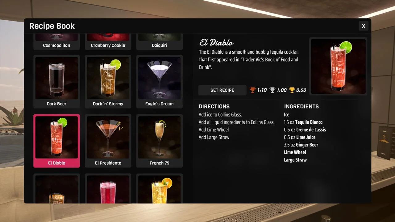 Bartender Hustle — это динамичный симулятор бармена, в котором вам предстоит окунуться в атмосферу шумных вечеров, ярких коктейлей и непрерывного общения с посетителями. Игрок берет на себя роль начинающего бармена, мечтающего стать мастером своего дела и заработать репутацию в индустрии развлечений. В процессе игры вы будете учиться готовить десятки разнообразных напитков — от классических коктейлей до авторских миксов, при этом важно соблюдать рецептуру, правильно сочетать ингредиенты и...- ОС:Windows 7 / 8 / 10 (64-bit)