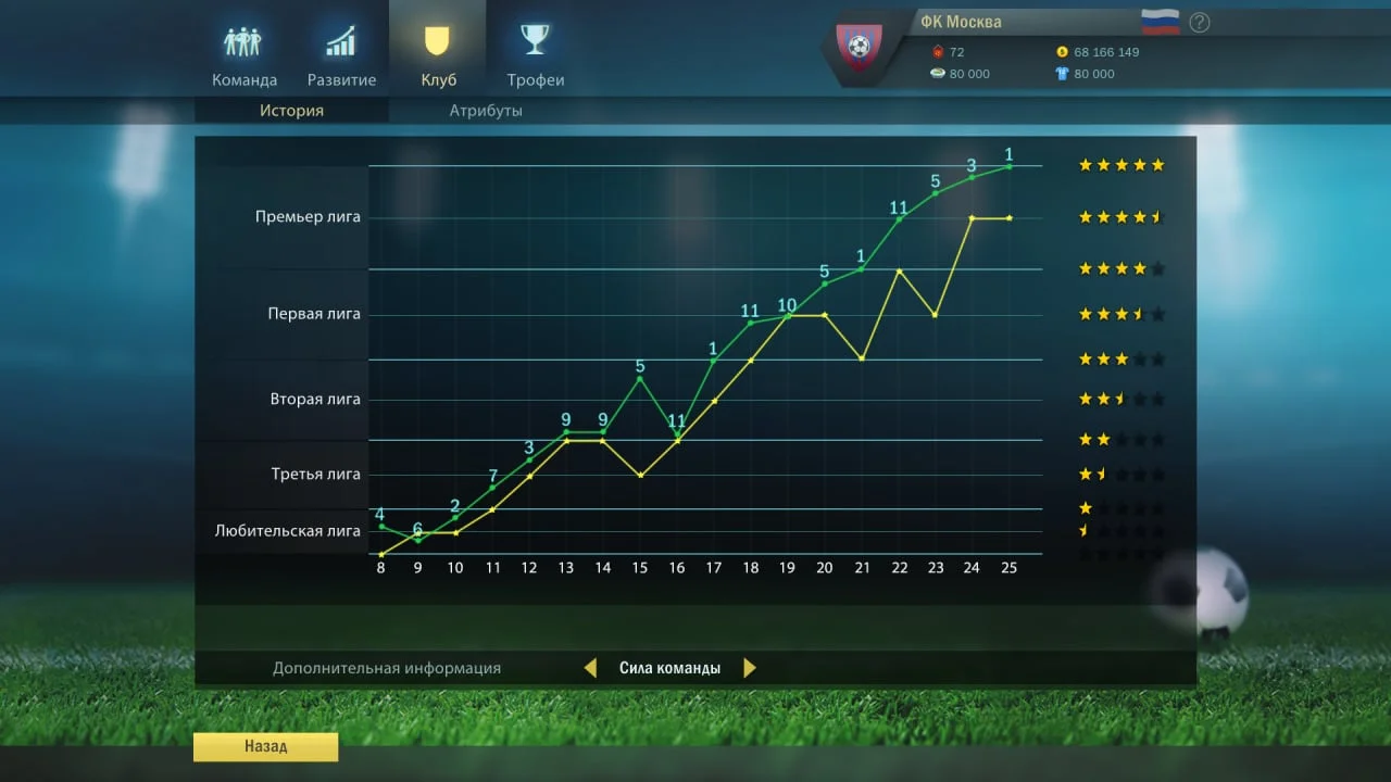 Football, Tactics & Glory — это оригинальная стратегия, объединяющая элементы футбольного менеджера и пошаговой тактики. Игрок берет под контроль небольшую футбольную команду и ведет её к славе, развивая игроков, улучшая инфраструктуру клуба и продумывая каждый матч как шахматную партию. В отличие от классических футбольных симуляторов, здесь решающее значение имеет не скорость реакции, а грамотное стратегическое мышление и планирование. Каждый матч проходит в пошаговом режиме, где важно...- ОС:Windows 7, 8, 10, 11 (64-bit)